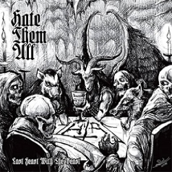 On Last Feast with the Beast the band's line-up is completely anonymous, but there are two guys behind the band; one taking care of vocals and all string instruments and another responsible for banging the drums of doom, so to speak. Hate Them All's Black Metal isn't as black and white as one might think of at first. It contains more nuances than many grim and raw sounding Black Metal bands dare to incorporate into their albums. In some ways Hate Them All manages to sound like the sinister Finnish hate commando Barathrum, also having some dirty rock-ish vibe wrapped around their sound, which is always cool in my book. Such song titles as "Fucking Whore" and "Beer and Fist" tell all about the band's tongue-in-cheek attitude. (Black) Metal doesn't have to be so serious all the time, otherwise the world would be a boring place, right?